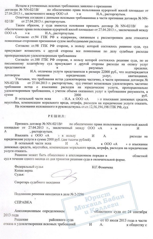 В сентябре 2013 года сотрудницей нашей компании было обжаловано незаконное решение суда в отношении гражданина А. в спорном деле о предоставлении туристических услуг.